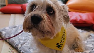 Lukukoira Tuikku Neulamäen kirjastossa