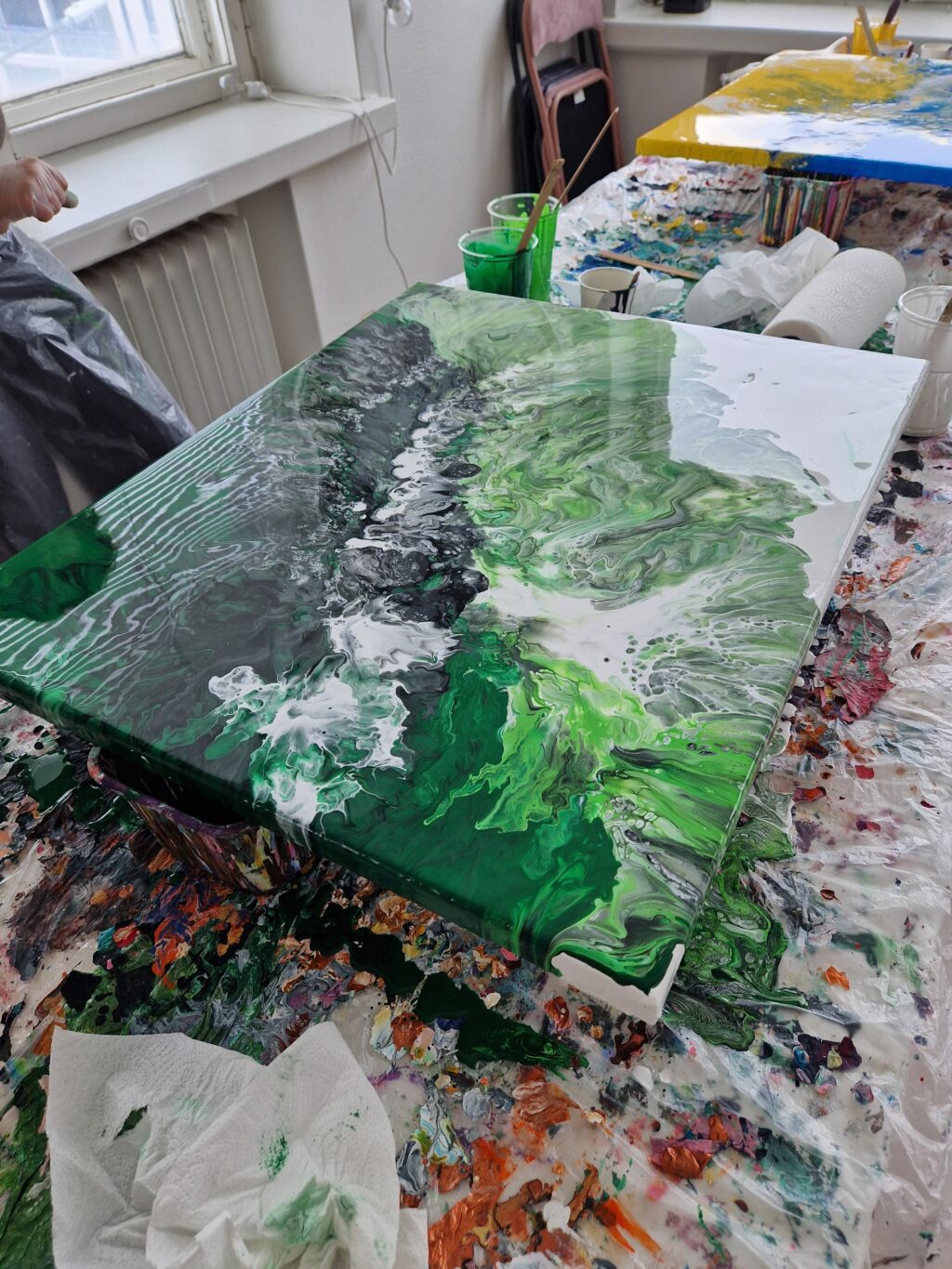 Kuopion rennoimmassa akryylikaato workshopissa unohdetaan suorittaminen ja opitaan Dutch Pouring -akryylikaatotekniikka. Tule siis päästämään luovuutesi valloilleen kuopiolaisen taiteilijan Noora Svärdin opissa. Voit osallistua, vaikka sinulla ei olisi aikaisempaa kokemusta maalaamisesta. Workshopissa saat perustiedot taiteen tekemiseen akryylikaatotekniikalla.