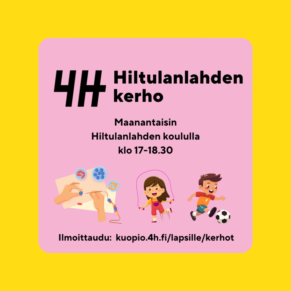 Kerho on tarkoitettu 6-12 vuotiaille lapsille. Kerho kokoontuu Hiltulanlahden koululla maanantaisin klo 17:00-18:30.