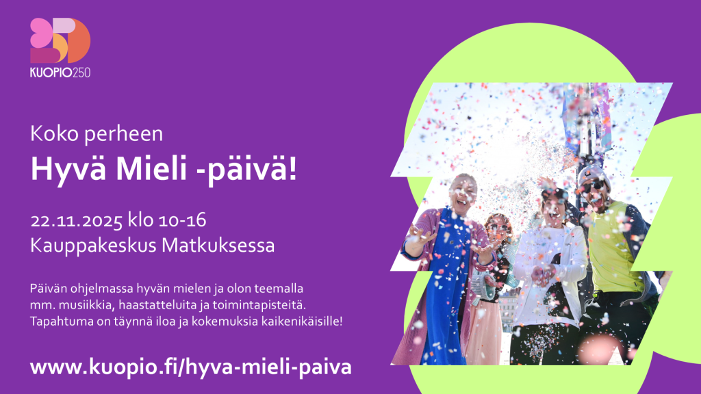 Good Mood Day event is open to everyone and free of charge.The event is organized annually in Kuopio as a part of mental health and preventive substance abuse work weeks. Event organizer is City of Kuopio.