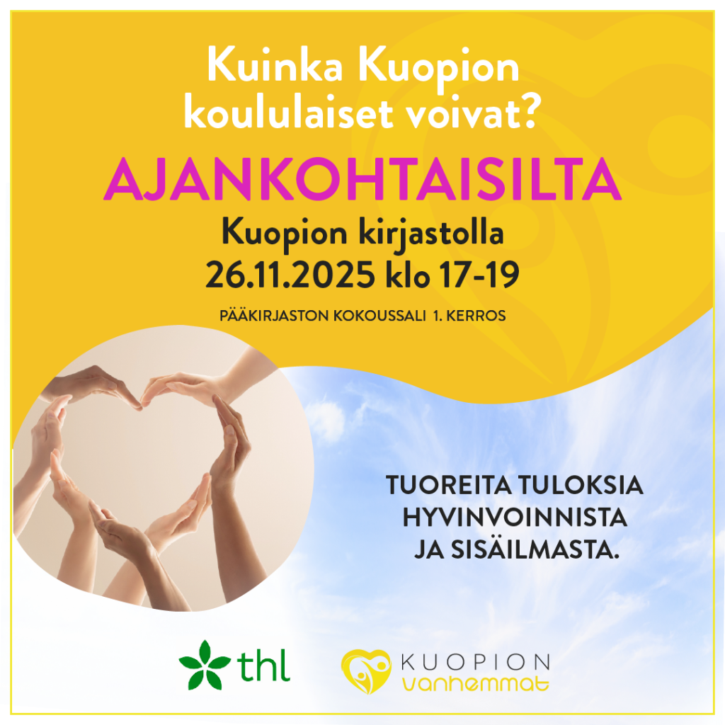Kuopion Vanhemmat ry:n järjestämä ajankohtaisilta tarjoaa mahdollisuuden kysyä, keskustella ja saada tietoa suoraan asiantuntijoilta siitä, miten kouluympäristö ja arjen valinnat vaikuttavat lasten terveyteen ja oppimiseen.