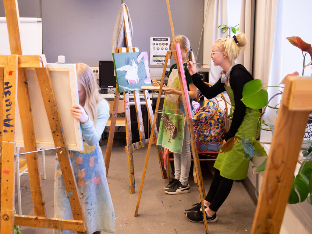 Kuvataideryhmissä lapset ja nuoret toteuttavat luovuuttaan ja kekseliäisyyttään, harjoittelevat havaintojen tekemistä ja tutustuvat eri materiaaleihin ja välineisiin.
