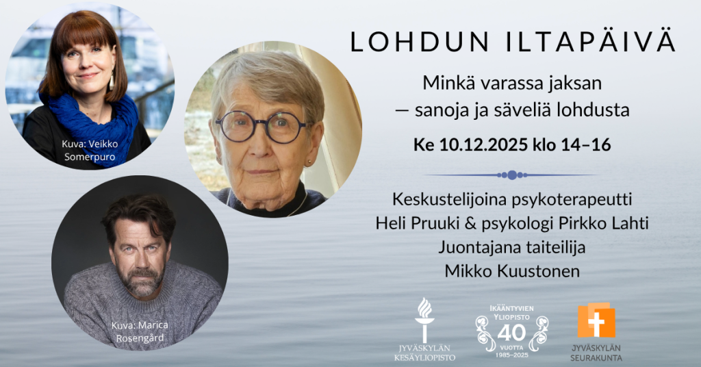 Verkkoluennon puhujina nähdään psykologi Pirkko Lahti ja psykoterapeutti Heli Pruuki. Tilaisuuden juontaa Jyväskylästä käsin taiteilija Mikko Kuustonen.