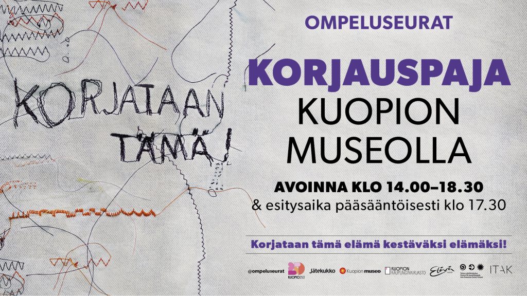 Korjaaminen on arjen juhlaa! Tapahtuma osa Kuopio250-ohjelmistoa ja saanut juhlavuoden tuotantotukea. Yhteistyössä Jätekukko, Kuopion museo, Kuopion kaupunginkirjasto, Elävä säätiö, Taike ja ITAK