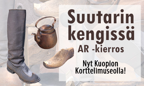 Korttelimuseon suutarin tuvassa pääset tutustumaan Suutarin kengissä AR -kierrokseen, lisätyn todellisuuden sovellukseen, joka on käytettävissä mobiililaitteilla. Pääset esimerkiksi kokeilemaan itse suutarointitaitojasi virtuaalisen suutarointipelin kautta. Sovelluksen valokuviin, videoihin ja teksteihin voi syventyä myös kotona Kuopion korttelimuseon verkkosivuilla.