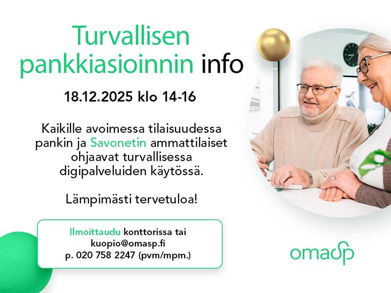 Tervetuloa kaikille avoimeen ja maksuttomaan tilaisuuteen, jossa OmaSp:n ja Savonetin ammattilaiset ohjaavat turvallisessa digipalveluiden käytössä.