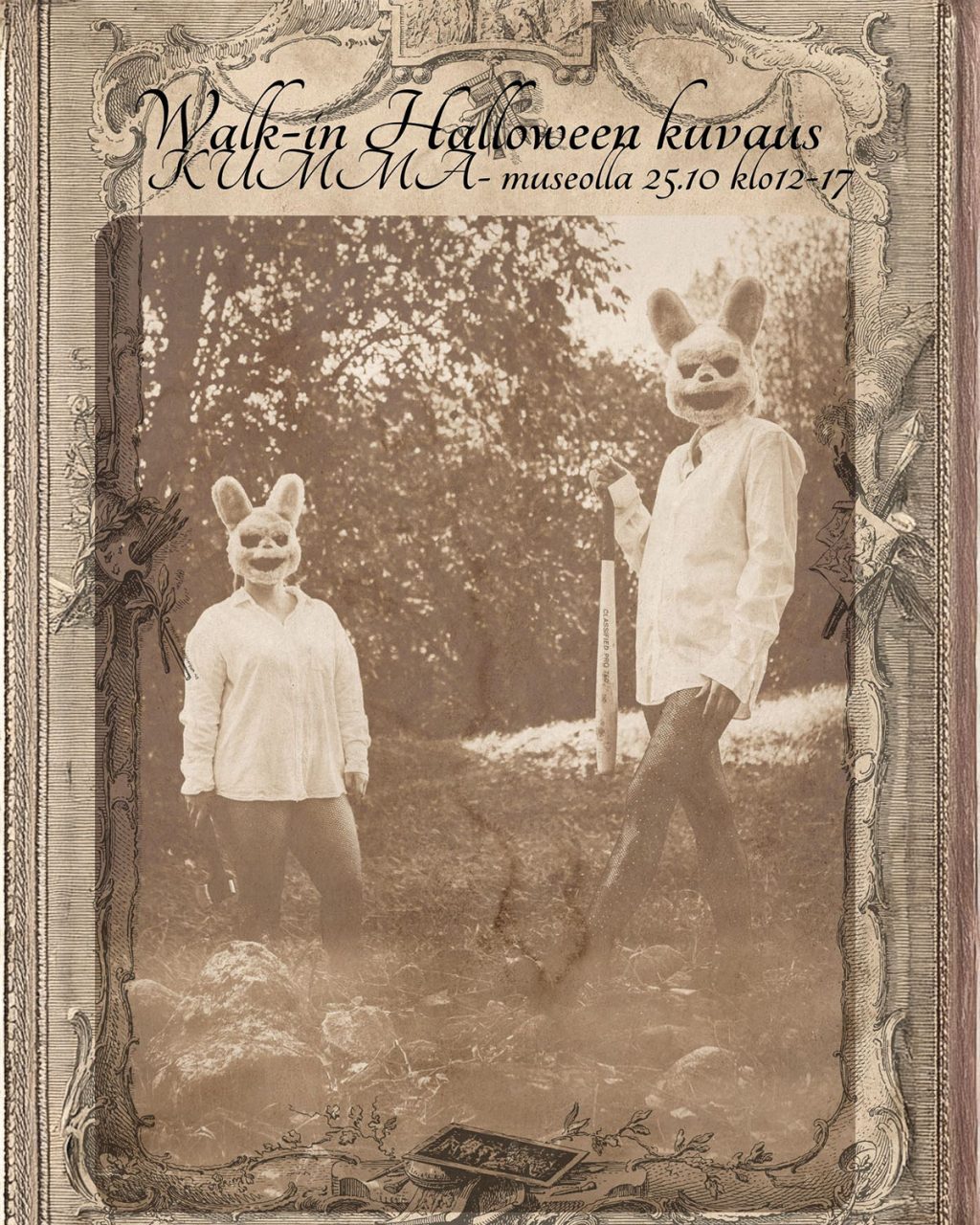 Astu halloweenin maailmaan ja tule kuvattavaksi yksin tai vaikkapa kavereiden kanssa taidemuseon toiseen kerrokseen pääsymaksun hinnalla. Pientä rekvisiittaa paikan päällä, mutta voit myös itse pukeutua. Valokuvaajat hoitavat loput.